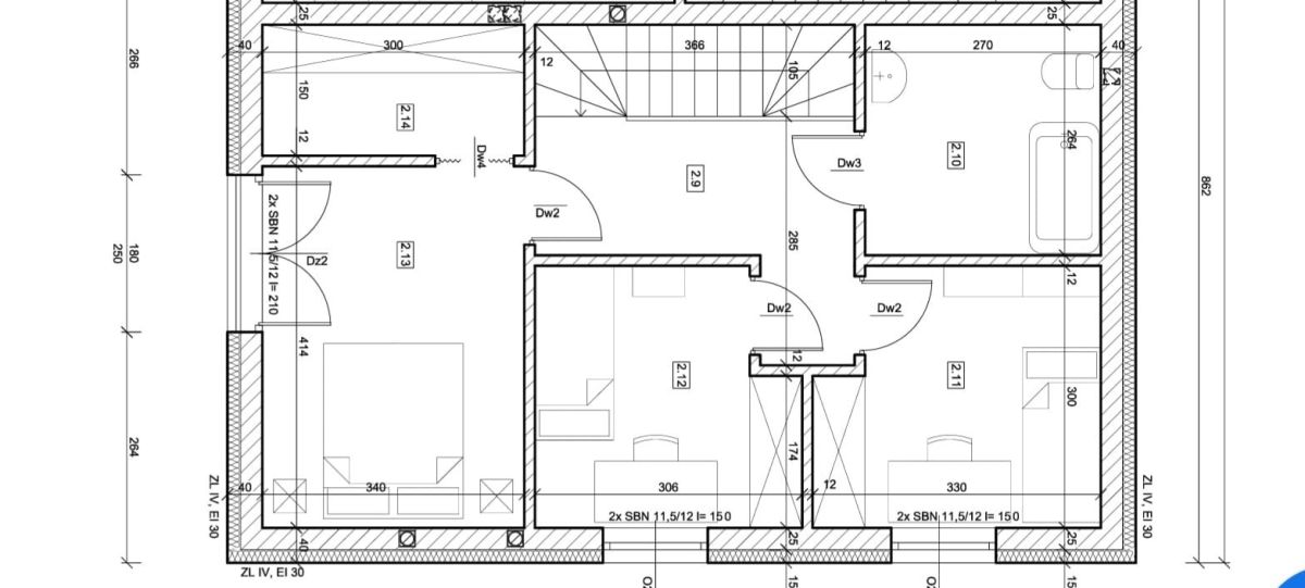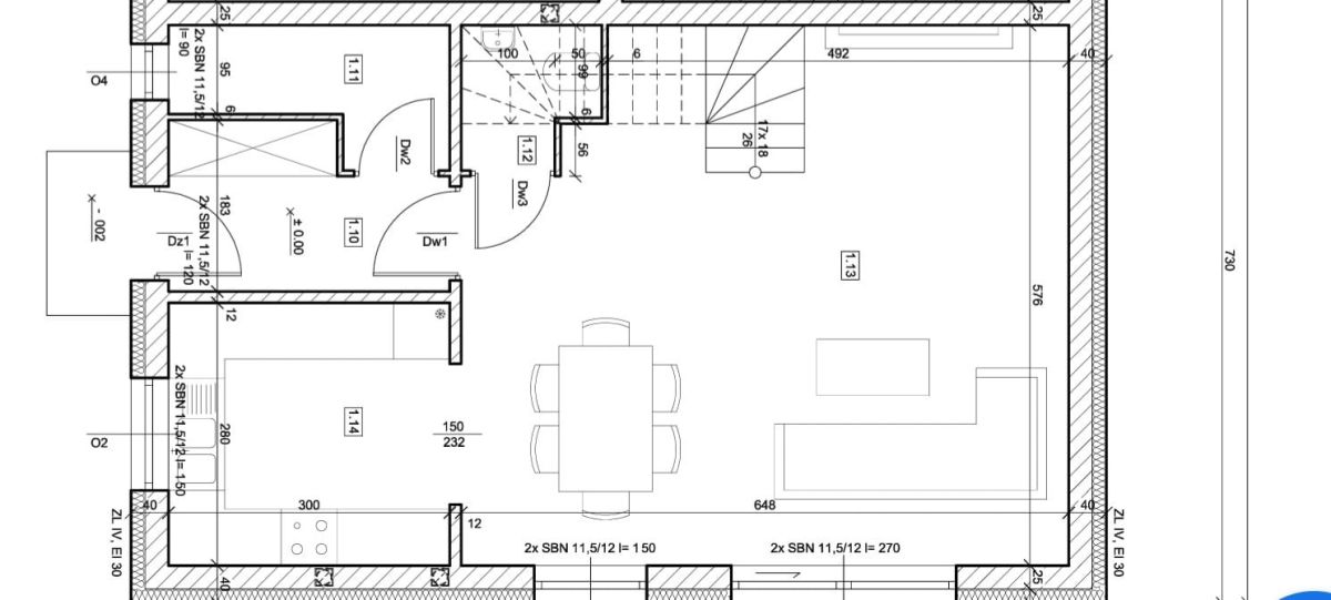 ➔ podwójna ściana działowa 2 x 25 cm plus dylatacja