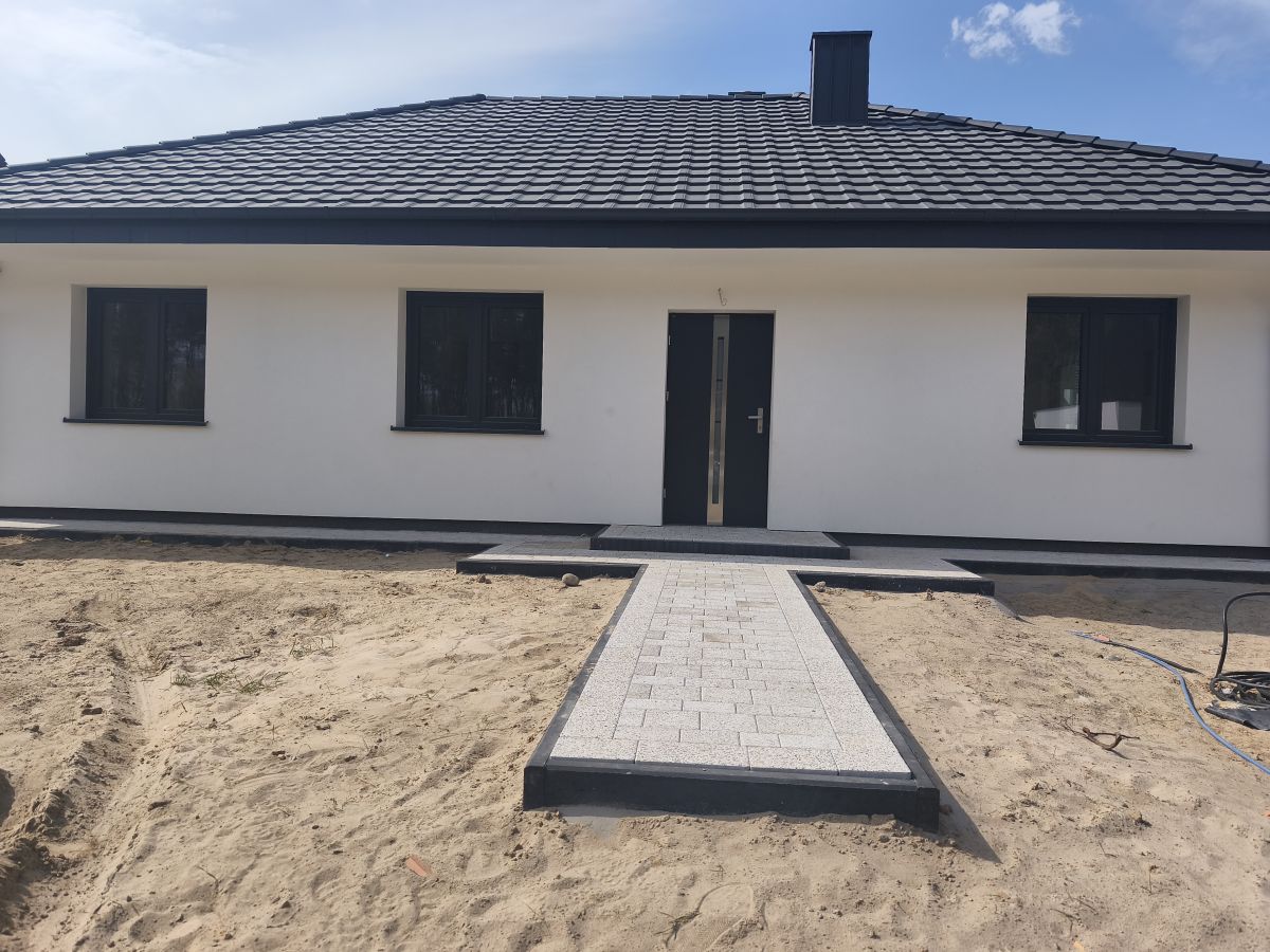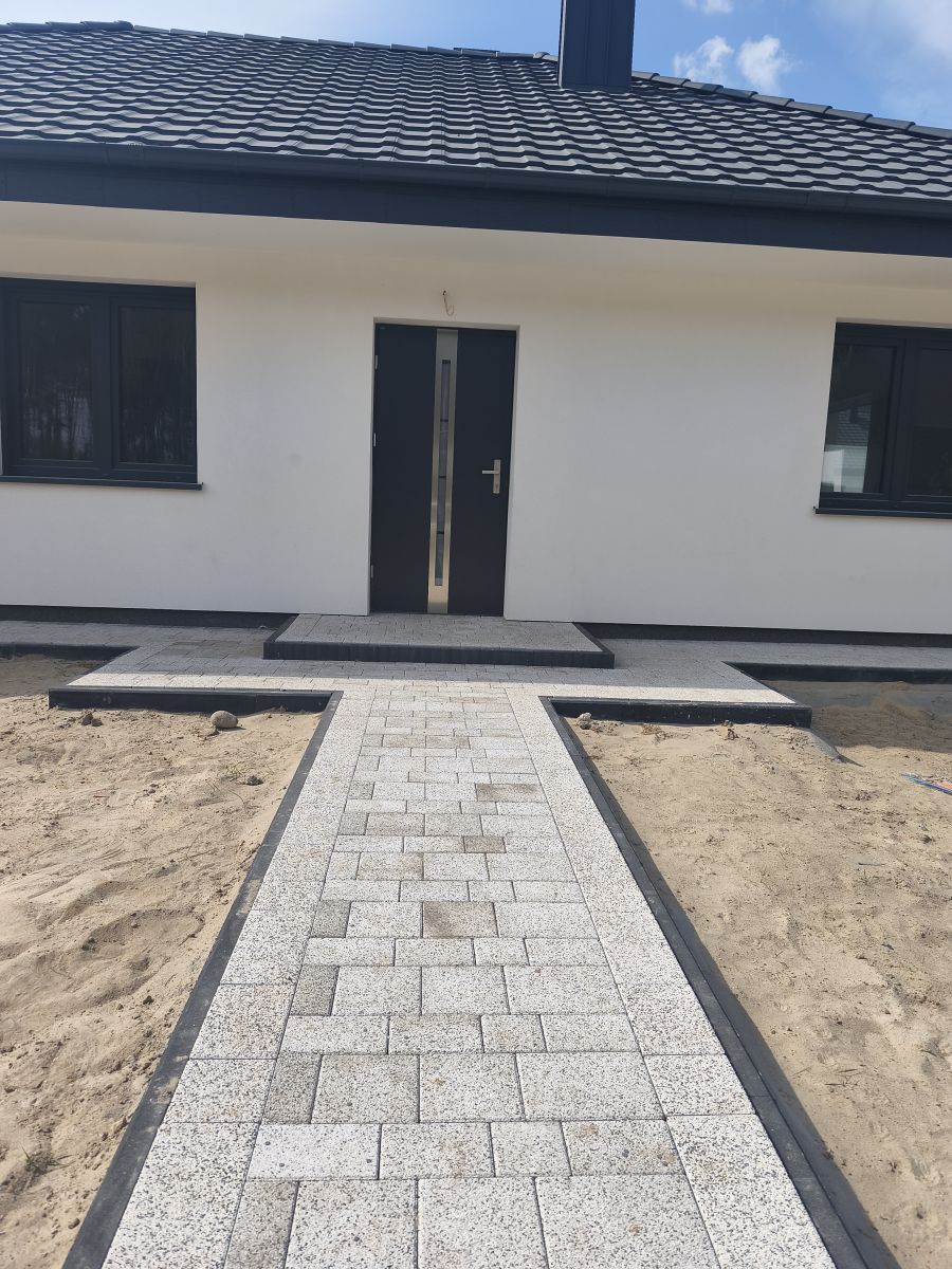 Kostka brukowa: dojście od furtki do drzwi wejściowych oraz taras o wymiarach 3x4m