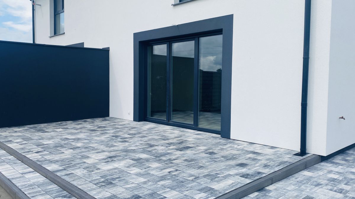 33. Zagospodarowanie terenu - wejścia do lokali wykonane z kostki brukowej
