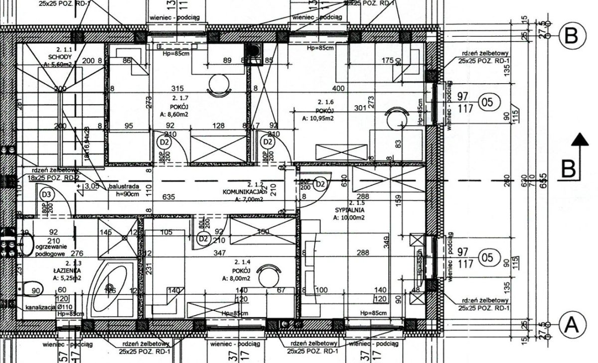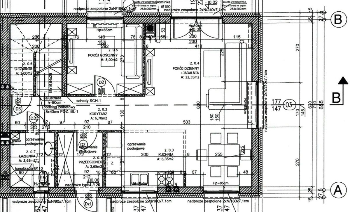 14. Posadzki cementowe parter izolowane styropianem 10 cm, piętro izolowane styropianem 3 cm