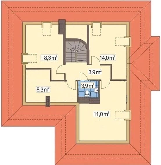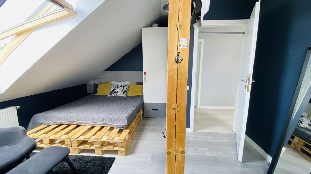 Na piętrze do dyspozycji mamy cztery sypialnie i wc. Dodatkowo z korytarza jest wyjście strychowe na strych wielkości ok 20 m2