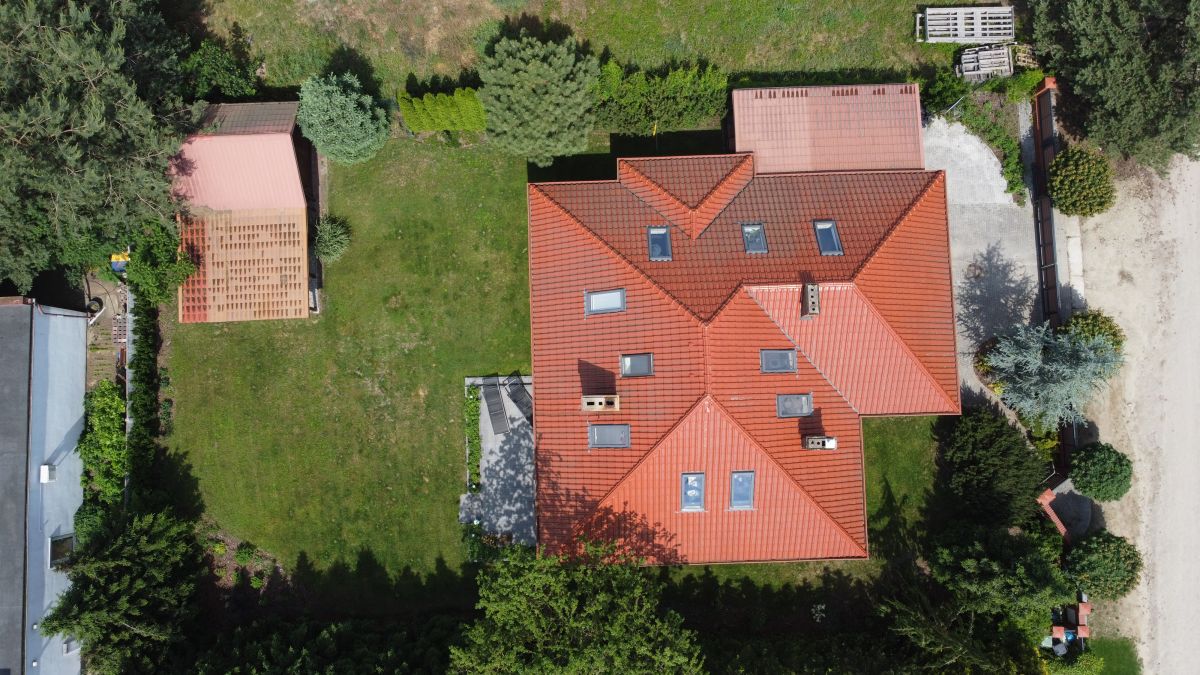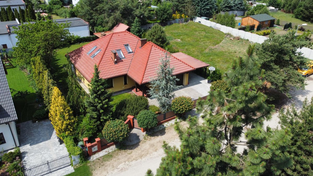 100 metrów od ściany Wielkopolskiego Parku Narodowego.Dom posadowiony jest na działce wielkości 938 m2 o powierzchni całkowitej 364 m2 ( powierzchnia użytkowa 162,90 m2), składa się z siedmiu pokoi, gdzie aż sześć może być przeznaczone na sypialnie. Na parterze mieszczą się dwie łazienki, garaż, pralnia, spiżarenka, kuchnia + salon