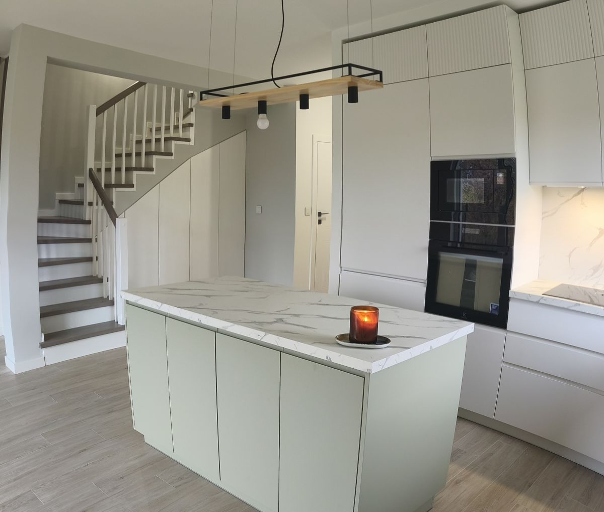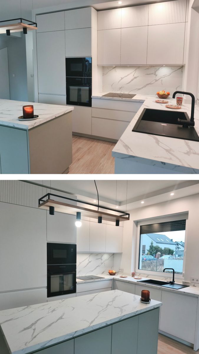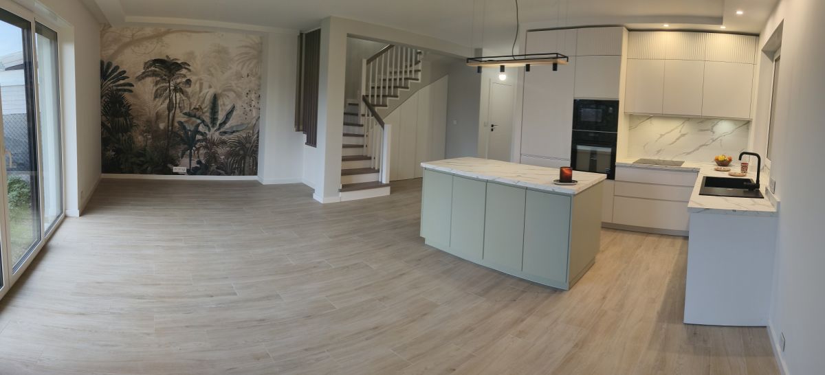 ➔Nowa, nigdy nie używana, zabudowa kuchenna z wyspą. Sprzęt marek Whirpool i Elektrolux (duża lodówka w zabudowie, piekarnik, mikrofalówka, płyta indukcyjna i zmywarka) .