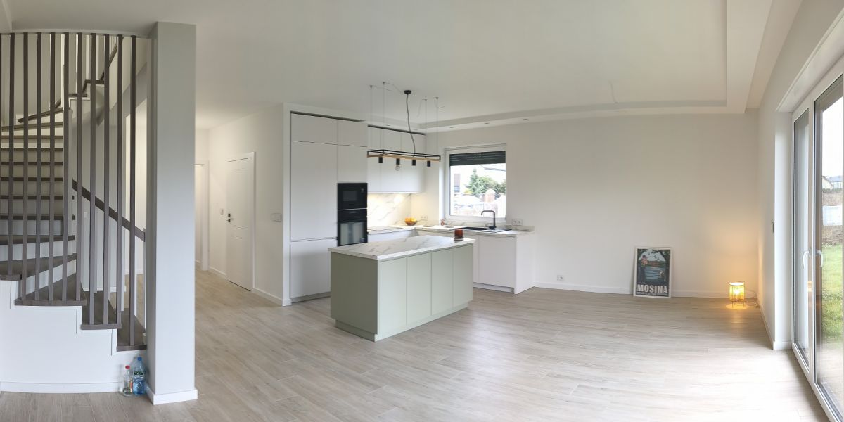 Dom został wykończony z dbałością o szczegóły oraz jakość użytych materiałów i nigdy nie był zamieszkały.