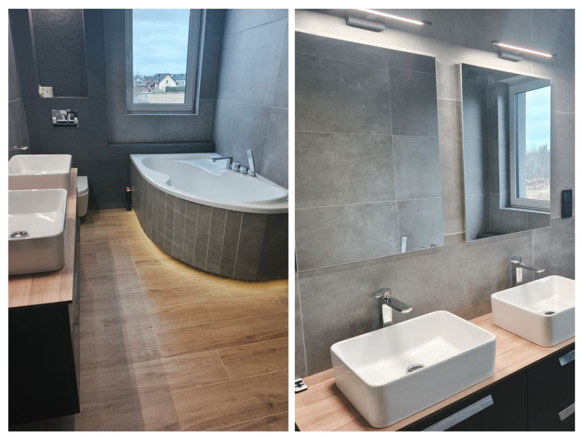 ➔Łazienka na parterze z prysznicem, w górnej łazience wanna podwójny zlew
