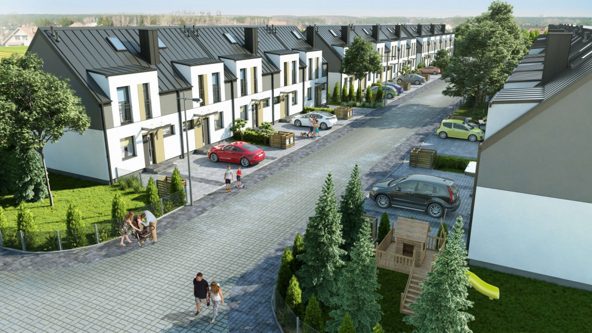 Inwestycja składająca się z 79 domów gwarantuje wysoki standard lokali a jednocześnie gwarancje cichej, spokojnej i zielonej okolicy.