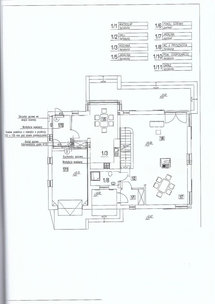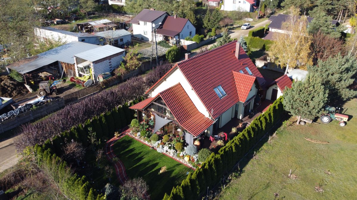 Zbudowany w 2010 roku składa się z salonu, jadalni, kuchni, łazienki, wiatrołapu, pomieszczenia gospodarczego i garażu na parterze,