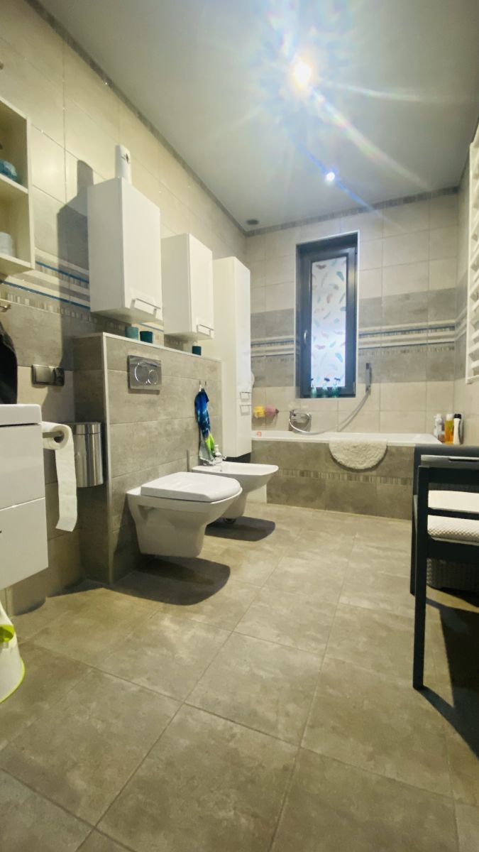 Podłogi wyłożone są panelami. We wszystkich oknach zamontowane są rolety elektryczne.