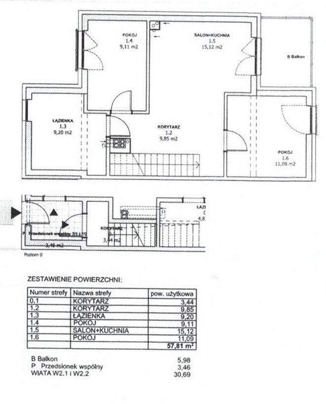 wejście do mieszkania, korytarz o pow. 3,44m2